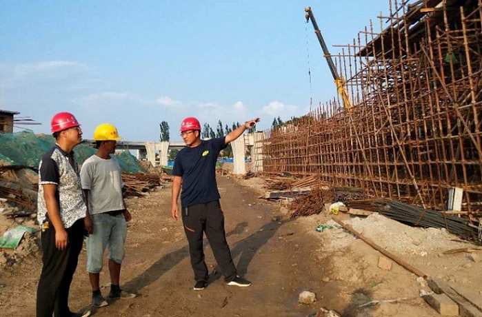 蒙山大街與濱河西路互通立交工程涵蓋橋梁工程和道路工程兩個部分,是四公司近些年來承建的難度較大的一項橋梁工程。該工程建設(shè)任務(wù)重,施工難度大,公司領(lǐng)導(dǎo)高度重視,委派李素偉為項目經(jīng)理。有人勸他不要接這“燙手的山芋”,可他卻說:“我是一名黨員,沖鋒在前是每個黨員干部義不容辭的責(zé)任?!睉{借這樣的擔(dān)當(dāng)和勇氣,他不畏艱難,勇挑重擔(dān),迅速組建項目部,第一時間帶領(lǐng)施工人員進場施工。進場后,他主動協(xié)調(diào)各方關(guān)系,上午到濱河公園產(chǎn)權(quán)單位,協(xié)調(diào)苗木遷移問題,下午趕赴設(shè)計院協(xié)調(diào)地勘與圖紙設(shè)計工作,為工程推進贏得了寶貴時間。施工中,為全面推進工程進度,他充分利用一切資源,采取“多點開花,重點投入”的施工方式,提高工作效率。同時,為避免地下管線施工與其他工序沖突,他安排技術(shù)人員對現(xiàn)狀地下管線進行詳細摸排,及時確定煤氣、自來水、國防光纜等管線的準確位置,并將相關(guān)數(shù)據(jù)提供給設(shè)計院,為工程后續(xù)施工奠定了堅實的基礎(chǔ)。