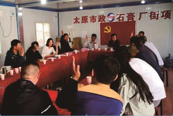 萬柏林片區(qū)臨時聯(lián)合黨支部的成立是太原市城市建設管理中心和各參建單位落實市住建委黨工委提出的“黨建進工地、引領促發(fā)展”活動的生動實踐,是不斷延伸黨建工作領域、推進項目黨建的重要手段。