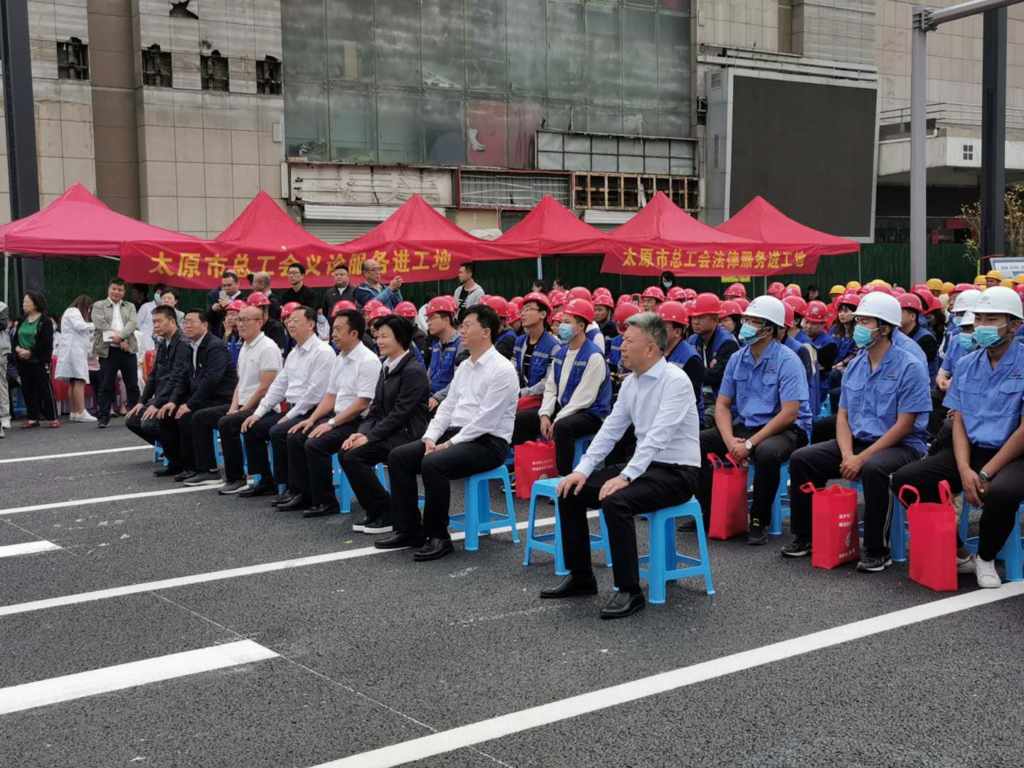 本次活動(dòng)包括送關(guān)愛(ài)、送健康、送法律、送文化、送文明?;顒?dòng)中,市愛(ài)爾眼科醫(yī)院、市婦幼保健院等六家單位為參建人員及農(nóng)民工提供醫(yī)療義診和免費(fèi)的法律援助服務(wù)。市總工會(huì)黨組書(shū)記、常務(wù)副主席薛之東代表太原市委、市總工會(huì)、市人社局向參加此次活動(dòng)的農(nóng)民工表示最衷心的感謝和最熱烈的歡迎。解放路改造工程二標(biāo)段農(nóng)民工代表向全市百萬(wàn)職工發(fā)出了“爭(zhēng)做文明太原人建設(shè)錦繡太原城”倡議書(shū),號(hào)召大家都行動(dòng)起來(lái),繼續(xù)發(fā)揚(yáng)創(chuàng)城精神和干勁,為再現(xiàn)“錦繡太原城”盛景貢獻(xiàn)力量。同時(shí),領(lǐng)導(dǎo)們?yōu)樘薪夥怕犯脑旃こ痰膮⒔ㄈ藛T發(fā)放了月餅、口罩等慰問(wèn)品。“黨的理論創(chuàng)新”文藝小分隊(duì)進(jìn)行了文藝演出。