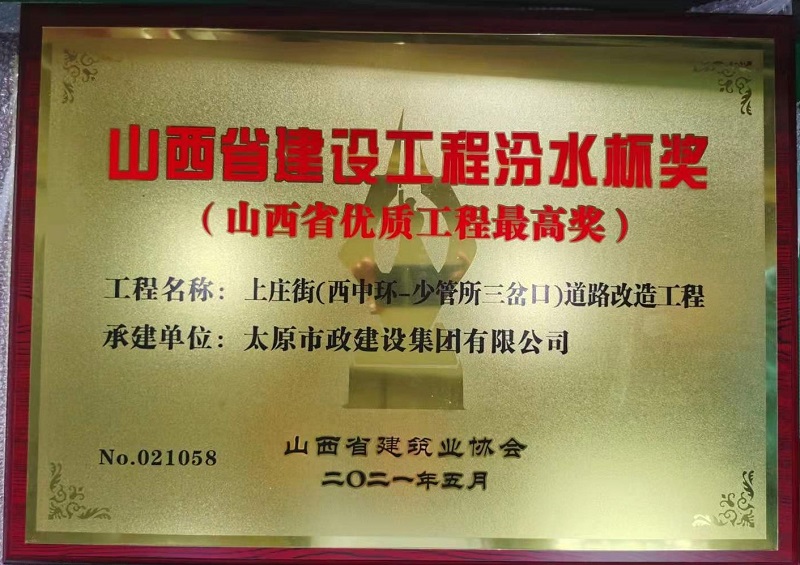 近日,集團(tuán)公司承建的太茅路改造工程二標(biāo)段、臥虎山快速路建設(shè)工程一標(biāo)段、上莊街(西中環(huán)—少管所三岔口)道路改造三項(xiàng)工程喜獲山西省建筑業(yè)協(xié)會頒發(fā)的2020年度“汾水杯獎”。這一獎項(xiàng)是山西省建設(shè)工程質(zhì)量最高獎,是我省唯一與魯班獎、國家優(yōu)質(zhì)工程獎、安裝之星獎等國家級工程建設(shè)獎項(xiàng)接軌的獎項(xiàng)。