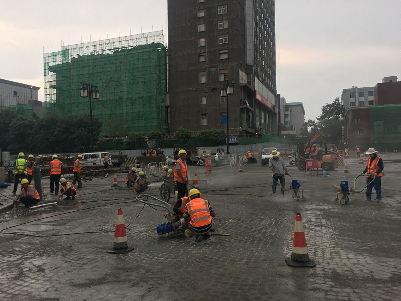 夏日的燥熱抵擋不住全體施工人員的工作熱情,為了全力推進(jìn)工程建設(shè),項(xiàng)目部合理延長(zhǎng)每日施工作業(yè)時(shí)間,增加作業(yè)班數(shù),不分晝夜進(jìn)行施工作業(yè)。為了有效提高施工速度,項(xiàng)目部采用流水作業(yè)的施工方式,多工作面平行作業(yè),提高機(jī)械利用率。同時(shí),項(xiàng)目部針對(duì)季、月、旬作出詳細(xì)計(jì)劃,建立起進(jìn)度協(xié)調(diào)工作制度,每周組織項(xiàng)目部管理人員及各工隊(duì)組長(zhǎng)召開施工調(diào)度會(huì),重點(diǎn)解決施工中的技術(shù)難題,以及計(jì)劃執(zhí)行情況和存在的問題,隨時(shí)根據(jù)施工情況調(diào)整各施工項(xiàng)目的人力、機(jī)械和材料用量,全力以赴推進(jìn)工程進(jìn)度。截至7月20日,廣場(chǎng)環(huán)路、迎澤南街路面磚鋪裝已完成100%,廣場(chǎng)西路鋪裝已完成90%,廣場(chǎng)東路完成63%;并州北路及廣場(chǎng)南路完成35%;廣場(chǎng)總鋪裝面積3萬多平米,已完成總鋪裝量的50%。