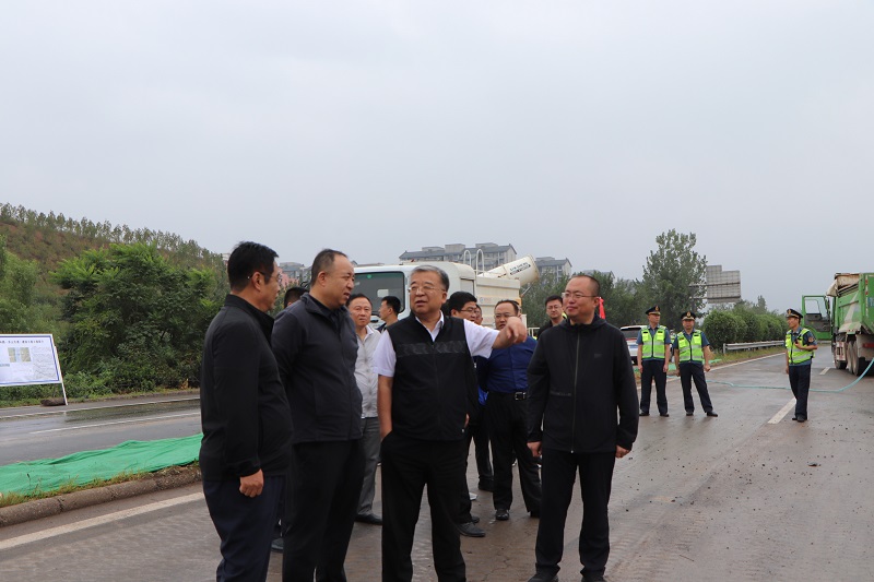山西省交通廳副廳長王晉實地查看了南內(nèi)環(huán)街東延建設(shè)工程下穿東山過境高速施工段封閉狀況以及臨時保通便道設(shè)施配置、安全警示標識標牌配備等情況,充分肯定了集團公司為保障高速公路正常運行所做的各項工作,他強調(diào)要進一步強化安全意識、落實安全責任,加強施工管理,全力以赴推進通道施工進度,盡快恢復此段高速公路的通行。