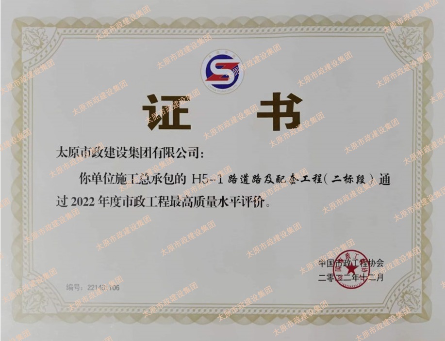 近日,集團(tuán)公司承建的H5-1路道路及配套工程(二標(biāo)段)通過了2022年度市政工程最高質(zhì)量水平評價。