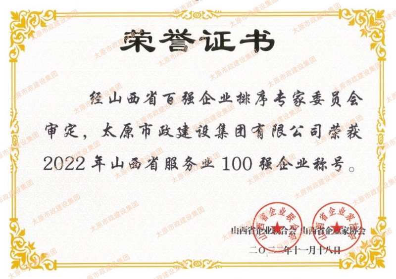 近日,集團(tuán)公司榮獲山西省企業(yè)聯(lián)合會和山西省企業(yè)家協(xié)會頒發(fā)的“山西省功勛企業(yè)”和“山西省100強(qiáng)”(排名第45位)“山西省服務(wù)業(yè)100強(qiáng)”榮譽(yù)稱號。集團(tuán)公司黨委副書記、副董事長、總經(jīng)理溫慧武榮獲“太原市功勛企業(yè)家”榮譽(yù)稱號。