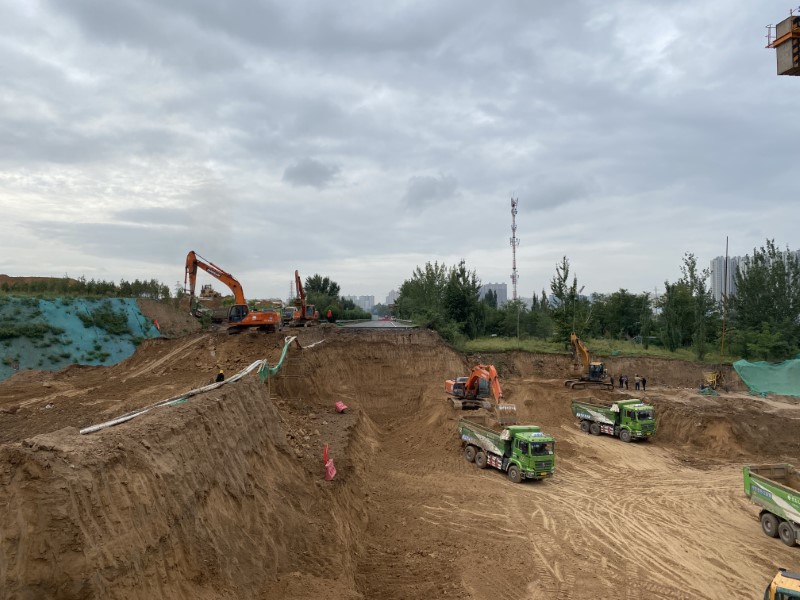迎澤大街東延建設(shè)工程長約1.25公里,寬70米,建設(shè)內(nèi)容包括道路、地道、擋墻、排水、電力等,于2021年5月開工建設(shè),由八公司負(fù)責(zé)承建。根據(jù)現(xiàn)場施工條件,該工程全線形成多點開花、分段作業(yè)的局面,多道工序在施工作業(yè)面同時展開、互不影響,有效壓縮了工序間的銜接時間。施工期間,項目部主動配合國家電網(wǎng)、鐵路等部門,加快推進(jìn)配電室改遷、10千伏水源線入地等作業(yè),確保工程順利進(jìn)行。施工中,項目部嚴(yán)控溝槽開挖,結(jié)合溝槽開挖較深且周期較長的情況,采用放坡開挖并打設(shè)鋼板樁的方式對土體進(jìn)行加固支護(hù),提升基坑整體穩(wěn)定性,保證成型質(zhì)量;強(qiáng)化溝槽回填,項目部采取管頂500毫米以下進(jìn)行人工回填,管頂500毫米以上利用機(jī)械分層進(jìn)行回填的方式,有效保證溝槽回填質(zhì)量達(dá)到施工要求。同時,該工程臨近居民區(qū),項目部全力做好安全施工,在圍擋、標(biāo)識牌、警示標(biāo)語、防護(hù)設(shè)施、灑水降塵等方面處處把關(guān),嚴(yán)格要求,優(yōu)質(zhì)高效推進(jìn)工程建設(shè),全力打造安全文明標(biāo)準(zhǔn)化工地,并結(jié)合施工實際,修建臨時便道,解決下雨出行難的實際問題,保證居民日常出行安全,得到了居民們的交口稱贊。全體參建人員擼起袖子、鼓足干勁,保質(zhì)保量完成各項施工任務(wù),作為“三晉第一街”的迎澤大街也以嶄新面貌出現(xiàn)在廣大市民面前,成為連接?xùn)|西兩山的一條通衢大道。