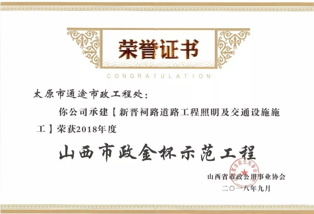 通途市政工程處兩項(xiàng)工程喜獲山西省市政金杯示范工程榮譽(yù)稱號(hào)