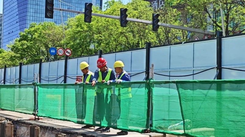 施工以來,集團(tuán)公司全程安排專人值守地鐵口交通導(dǎo)行,多舉措升級現(xiàn)場安全防護(hù)設(shè)施——開辟行人安全通道,協(xié)調(diào)劃定“公交專用通道”,在井蓋四周設(shè)置緩坡與明黃警示帶,為圍擋加裝柔和燈帶……以細(xì)微處的貼心舉措,實(shí)現(xiàn)“施工便民不擾民”。
