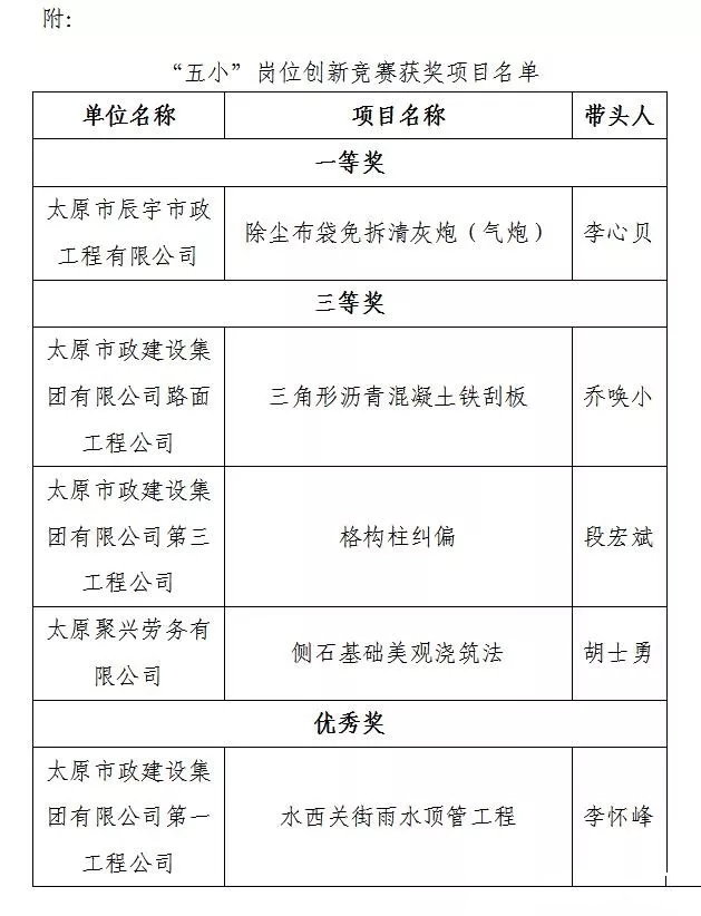另訊,集團公司五項創(chuàng)新項目被市總工會評為“‘五小’崗位創(chuàng)新競賽獲獎項目”稱號。