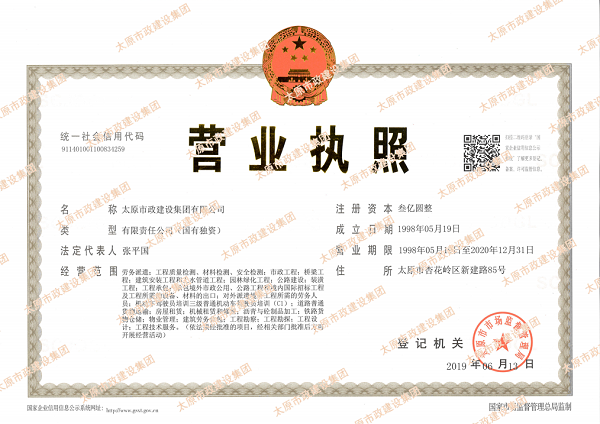 太原市政建設集團有限公司增加經(jīng)營范圍