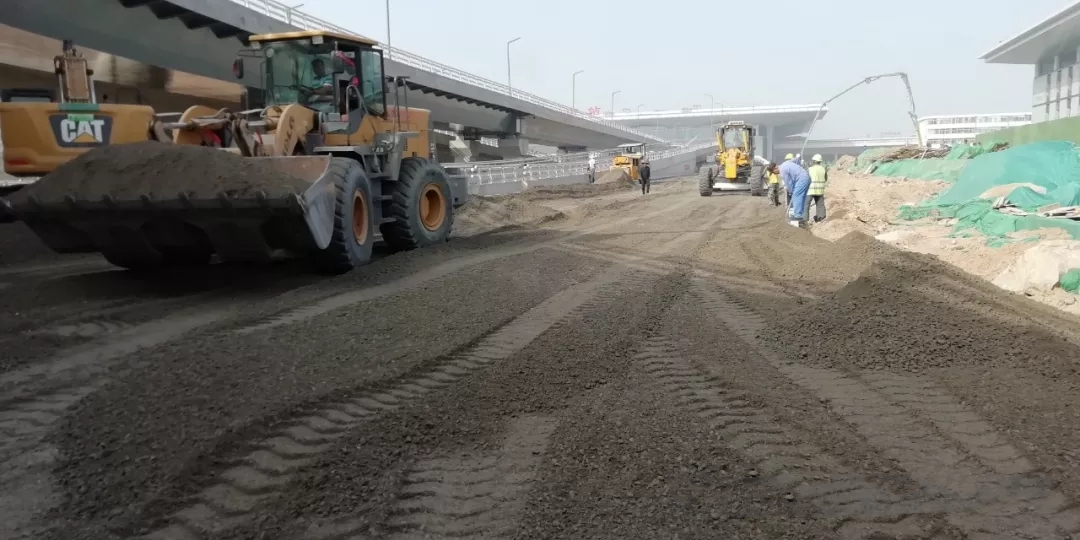太原市政建設(shè)集團有限公司太原南站東廣場配套路網(wǎng)工程龍堡路、規(guī)劃一路、F1路、F2路等10條道路水穩(wěn)鋪設(shè)已全部完成