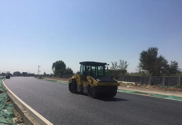 太原市政建設(shè)集團(tuán)有限公司軍民融合區(qū)柏板路建設(shè)工程開始瀝青混凝土上面層鋪設(shè)
