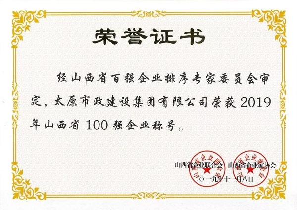 11月8日,山西省企業(yè)聯(lián)合會、山西省企業(yè)家協(xié)會攜手山西財(cái)經(jīng)大學(xué)向社會發(fā)布“山西企業(yè)100強(qiáng)排行榜”,同時(shí)發(fā)布《山西企業(yè)100強(qiáng)(年度)發(fā)展報(bào)告》。太原市政建設(shè)集團(tuán)有限公司榮獲“2019年山西省100強(qiáng)企業(yè)”稱號,排名第39位。