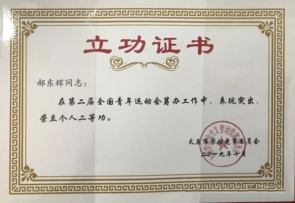 太原市政建設(shè)集團(tuán)有限公司喜獲兩項(xiàng)第二屆全國(guó)青年運(yùn)動(dòng)會(huì)籌辦工作個(gè)人榮譽(yù)稱號(hào)