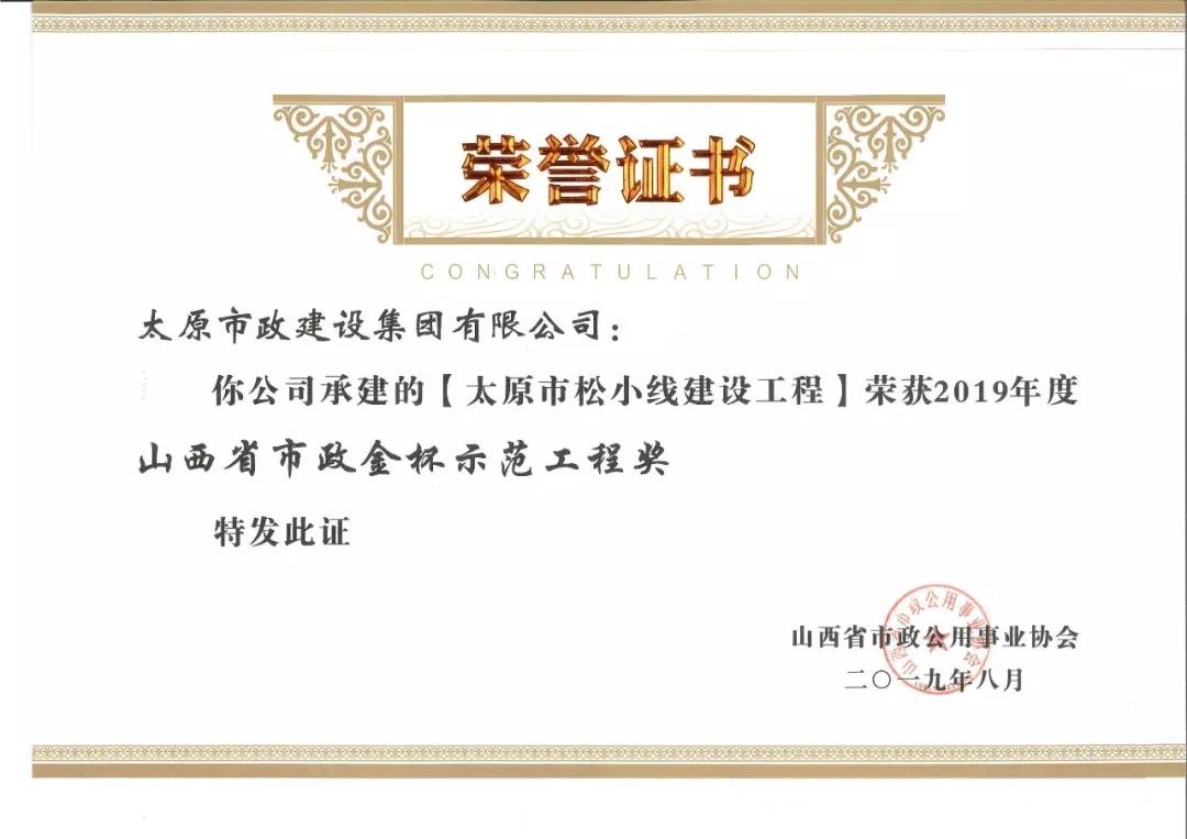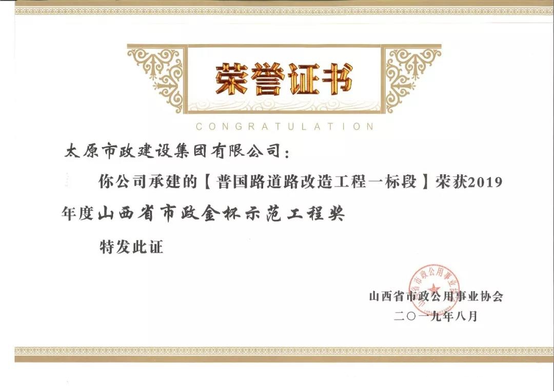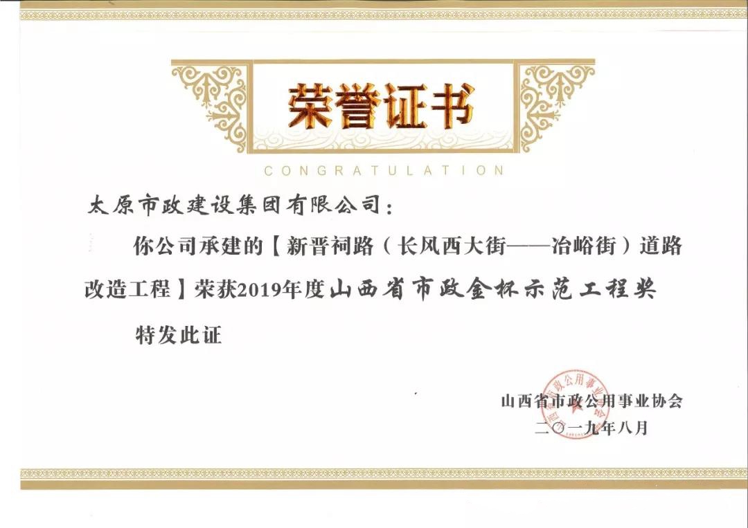 近日,太原市政建設(shè)集團(tuán)有限公司承建的太原市松小線建設(shè)工程,新晉祠路(長(zhǎng)風(fēng)西大街-冶峪街)道路改造工程,臥虎山快速路建設(shè)工程一標(biāo)段工程,普國(guó)路道路改造工程一標(biāo)段,西寨北街、西寨路道路建設(shè)工程榮獲山西省市政公用事業(yè)協(xié)會(huì)頒發(fā)的2019年度“山西省市政金杯示范工程”榮譽(yù)稱號(hào)。集團(tuán)公司王愛(ài)蓮、劉桂英、李瑞金、閆玲、王根和榮獲2019年度“山西市政工程優(yōu)秀項(xiàng)目經(jīng)理”榮譽(yù)稱號(hào)。