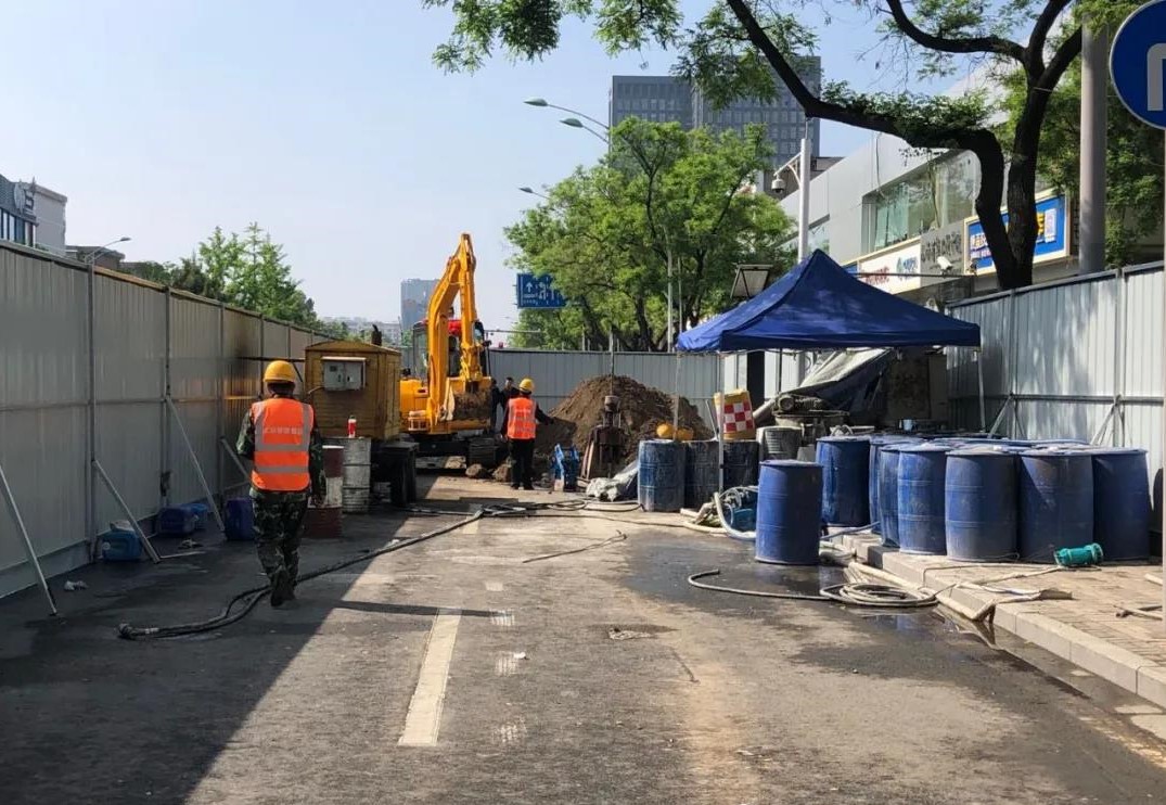 5月1日一早,三公司城南退水渠雨污分流及道路改造工程工地就響起了機(jī)械的轟鳴聲,挖掘機(jī)、注漿機(jī)、鏟車輪番上陣……項(xiàng)目部正在新建路段進(jìn)行污水接入井的注漿和支護(hù)工作,由于該區(qū)域地下土質(zhì)為液陷土,透水性較強(qiáng),易下陷,項(xiàng)目部經(jīng)過仔細(xì)研究后,決定采用二重管雙液注漿法對(duì)污水接入井進(jìn)行注漿。相較于傳統(tǒng)注漿工法,二重管雙液注漿法將兩種漿液通過雙重管輸送至鉆頭出口處進(jìn)行混合,通過調(diào)節(jié)漿液混合方式和注漿的方向性,控制注漿材料的凝結(jié)時(shí)間等,實(shí)現(xiàn)了注漿施工中對(duì)注漿方向、注漿量和注漿壓力的控制,使得加固范圍控制變得容易,漿液浪費(fèi)少,施工可操作性更好,有效確保了工程質(zhì)量。