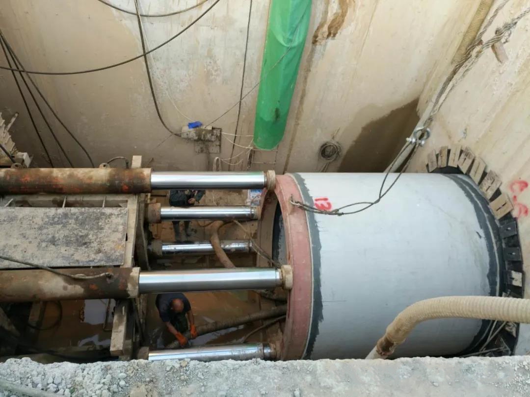 項目部三措并舉,強化“質(zhì)量意識”。頂管作業(yè)中,因有100米距離位于河道內(nèi),屬于濕陷性地質(zhì),施工人員通過干插片石、澆筑混凝土的方法進行了墊層換填,提升了基層承載力,有效防止管道下沉;進行頂管作業(yè)時,部分路段需下穿房屋,為防止出現(xiàn)房屋開裂或下沉的情況,施工人員積極研究對策,決定采用頂管穿過房屋后及時注漿的措施,保證上方房屋安全;頂管機出洞吊裝時,先用鋼板對2.4米口徑的管道進行連接,并在管口處設(shè)置護管、抹帶,提升管道間的穩(wěn)定性和密封性,防止發(fā)生滲水現(xiàn)象,為后續(xù)施工開展打下堅實基礎(chǔ)。