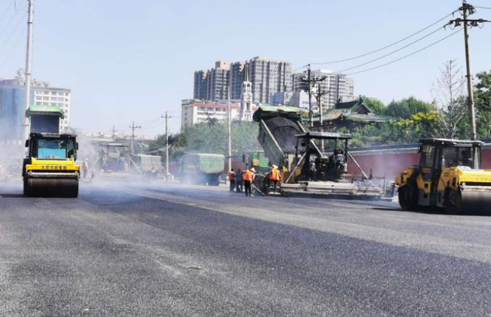 8月11日早上9點(diǎn),在四公司承建的水馬路建設(shè)工程施工現(xiàn)場(chǎng),項(xiàng)目部全體施工人員早已為工程北段下面層瀝青混凝土攤鋪?zhàn)鲋黜?xiàng)準(zhǔn)備工作。當(dāng)一車(chē)車(chē)滾燙瀝青被倒入瀝青攤鋪機(jī)的入料口,隨著攤鋪機(jī)的前進(jìn),瀝青混凝土被攤鋪到地面,并散發(fā)著刺鼻的氣味,大家來(lái)不及擦拭臉上的汗水,緊隨攤鋪機(jī),用手里的摟耙不停地整平著粒料。時(shí)值酷暑,全體施工人員的臉被熱氣炙烤得發(fā)燙,身上的衣衫也早已被汗水浸濕,但大家沒(méi)有喊苦喊累,默默堅(jiān)守在各自的崗位上,認(rèn)真做好每一道工序,確保路面瀝青鋪設(shè)的質(zhì)量。隨著壓路機(jī)往復(fù)碾壓,一條黝黑平整的柏油路逐漸有了雛形,接下來(lái)項(xiàng)目部將會(huì)進(jìn)行其他路段的攤鋪工作。