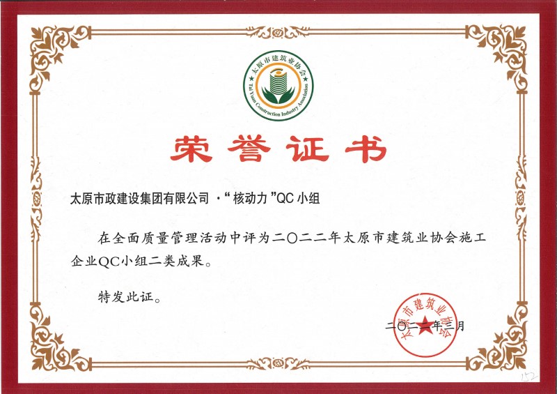 2022年太原市建筑業(yè)協(xié)會施工企業(yè)QC小組二類成果_“核動力”QC小組